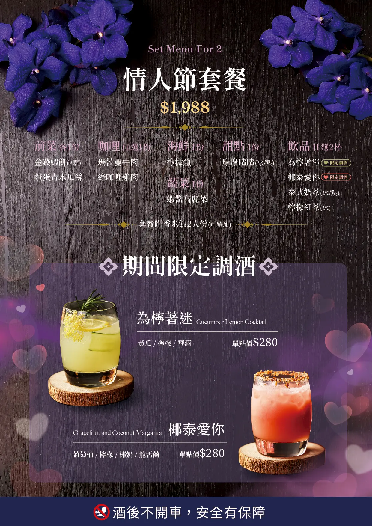 點「情人節套餐」或任一「期間限定調酒」